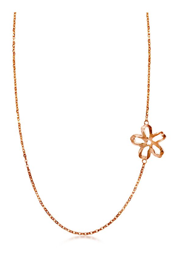 o zachodzie słońca, który nadaje jej różowe złoto. Naszyjniki, bransoletki i kolczyki w kształcie kwiatu niezapominajki są jak chwile, które na zawsze chcemy zatrzymać w naszej pamięci.