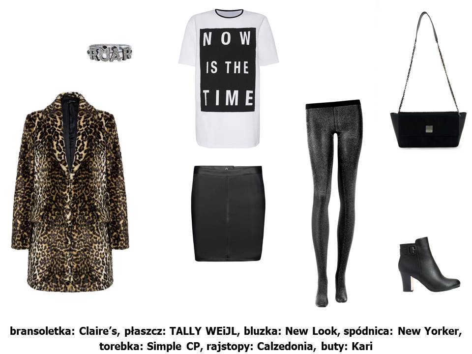 Sztuczne futro we wzór panterki już dawno przestało się kojarzyć z kiczem i weszło na dobre do kanonów mody. W Sylwestra od przybytku głowa nie boli – połącz obcisłą mini z białym printowym t-shirtem i brokatowymi rajstopami. Odpowiednio dobrane akcesoria w postaci kopertówki na delikatnym łańcuszku i wyrazistej bransoletki będą przysłowiową „kropką nad i”. Efekt? Strój godny prawdziwej królowej rock-n-rolla!