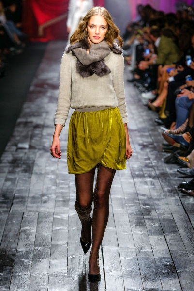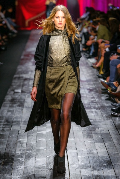 Kolekcja na sezon jesień-zima 2015/2016 pełna jest ciepłych, otulających, a jednocześnie zwiewnych i kobiecych tkanin oraz modnych faktur. Tkaniny nabijane koralikami i wyszywane ręcznie metalowymi elementami z indyjskich fabryk wprowadzają do kolekcji lekki dotyk orientu. Sylwetki utrzymane w spójnych sekwencjach kolorystycznych wyróżniały beże, błękity, szarości przechodzące w chiński róż, odcienie starego złota, po czerń wymieszaną z kolorem głębokiego wina. Kolekcja doskonale komponowała się z czarnymi rajstopami NAIS z dodatkiem lurexu, z kolekcji Gatta.