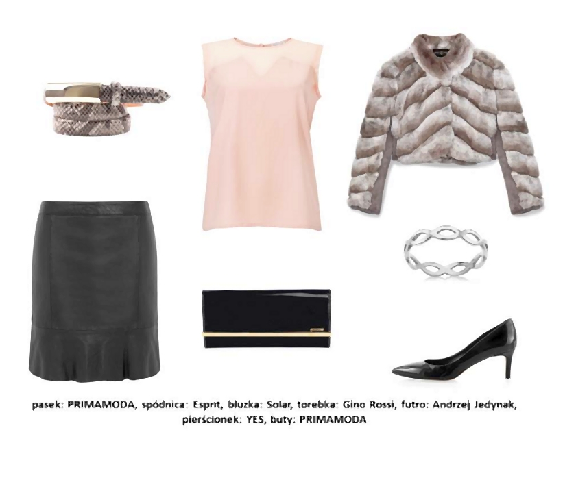 Aby stworzyć look odpowiedni na biznesowe spotkanie czy oficjalne wyjście, wystarczy połączyć bluzkę z elegancką spódnicą. Pastelowy róż to świeża alternatywa dla biało-czarnego, klasycznego zestawu. Do prostej stylizacji wystarczy dodać akcesoria z czarnej, lakierowanej skóry, a w mroźny wieczór zarzucić stylowe, krótkie futerko, które nie zaburzy proporcji sylwetki.