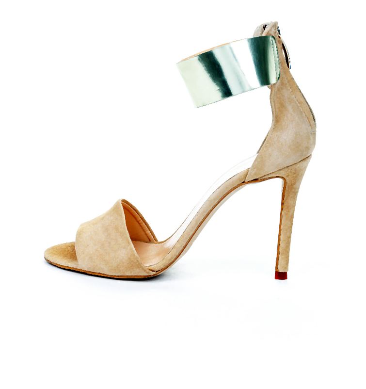 Wielbicielki klasyki zakochają się w dziewczęcych beżowych sandałach na obcasie, z czarnymi i białymi paseczkami. Można je zestawić ze zwiewną, romantyczną sukienką i wyruszyć na podbój miasta. W kolekcji jest i ich uwodzicielska odmiana. Prostota fasonu została przełamana motywem złotej, metalicznej skóry, przypominającej w fakturze skórę węża. Połączenie przeciwstawnych stylów sprawia, że ten typ sandałów na szpilce idealnie wpisuje się w trendy obecnego sezonu.