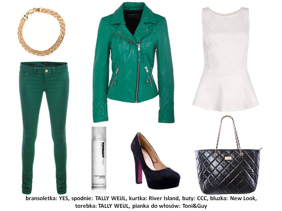o jasnej cerze, jak i piegowate rudowłose fashionistki. Ponieważ jednak odchodzimy powoli od idei kolorowego total looku, a zielona stylizacja od stóp do głów mogłaby wyglądać nieco komicznie, warto łączyć szmaragdowy z dwoma podstawowymi kolorami – bielą i czernią. Emerald zestawiony z modnym duetem będzie jego harmonijnym i zmysłowym uzupełnieniem.