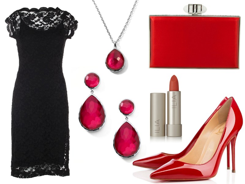 Kultowa mała czarna, którą Coco Chanel wprowadziła na salony, to niezbędnik w szafie każdej kobiety. Z żakietem może tworzyć świetny strój na biznesowe spotkanie, a z błyszczącymi i mieniącymi się dodatkami – strój na sylwestrową lub karnawałową zabawę. Modną koronkową kreację świetnie ożywią kontrastowe czerwone akcesoria – szpilki, lakierowana kopertówka i delikatna biżuteria z rubinami. Usta, obowiązkowo, czerwone!