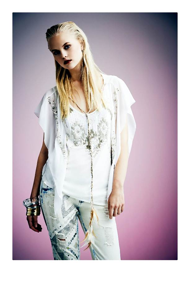 Kluczem linii w stylu plemiennego grunge’u jest miks różnych tkanin i tekstur, szczególnie ważny w misternie zdobionych topach, dekoracyjnych dżinsach i skórzanych akcesoriach do włosów. Indiańskie motywy, zinterpretowane w nowoczesny, z pozory niedbały sposób, pozwoliły na stworzenie oryginalnych ubrań i dodatków, które kojarzą się w przykuwające wzrok, modne stylizacje.