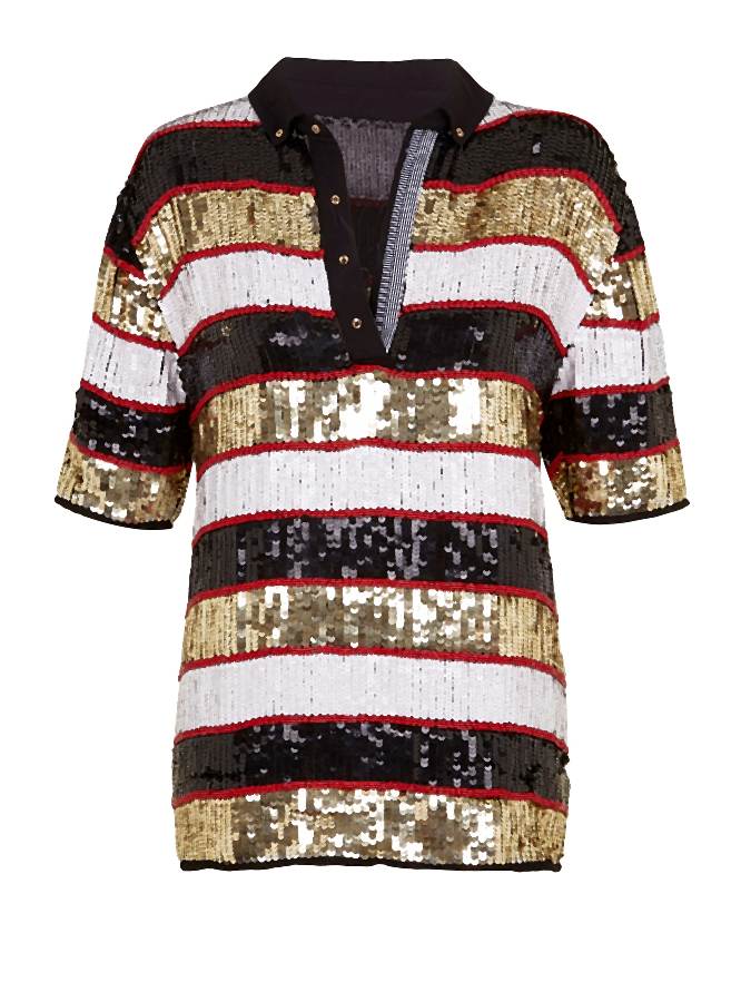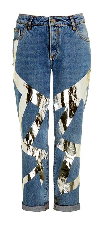 Dżinsy boyfriendy z lśniącymi wykończeniami będziemy mieć z cekinowymi koszulkami polo,