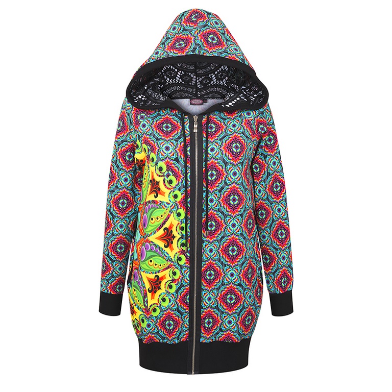 Choć mandale przedstawiane na ubraniach są trwałe i nie ma potrzeby niszczenia ich, to inspiracje z buddyjskiego symbolu są ogromne. Po pierwsze, kolor. Tradycyjne mandale są tworzone z dużej liczby barw, ponieważ każdy kolor umiejscowionyw obszarze mandali, ma swoje znaczenie i jest odpowiednio interpretowany. Vippi wykorzystuje w swoich projektach głównie żywe barwy, które pozytywnie nastrajają użytkowniczki tej marki. O wpływie koloru na człowieka oraz na jego samopoczucie mówią psycholodzy, opierając się na badaniach, zatem warto zwrócić uwagę na to, w jakie barwy ubieramy się i jak na nas działają.