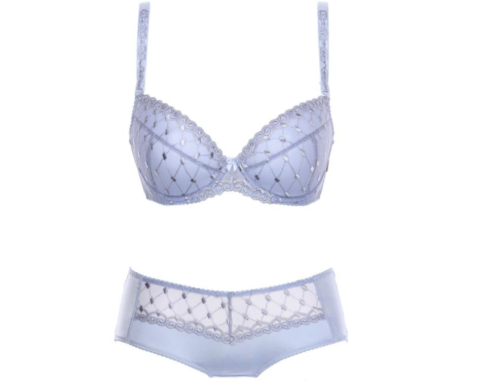 Moda obfituje w różnego rodzaju aplikacje. Obok printów militarnych, kwiatowych czy zwierzęcych królują także geometryczne: krata, koła i ponadczasowe pasy. Ta tendencja przeniosła się również do świata bielizny, gdzie modele wzbogaca się delikatnymi geometrycznymi wstawkami – na miseczkach biustonoszy i figach. Dodaje to nowoczesnego, dynamicznego charakteru. W zestawieniu z subtelnym odcieniem np. błękitu, to nowy odsłona niewinnego uroku.