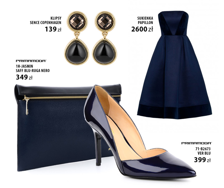 Dla fanek wyrafinowanej elegancji ciekawym rozwiązaniem będzie granatowy total look. To najmodniejszy kolor sezonu, który sprawdzi się także podczas karnawałowej zabawy. Lakierowane czółenka PRIMAMODA świetnie dopełnią prostą sukienkę bez ramiączek. Do tego szykowna kopertówka, którą dzięki dołączonemu paskowi można nosić także na ramieniu. Za sprawą takiej stylizacji cały świat będzie leżał u Twych stóp.