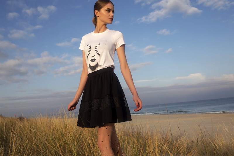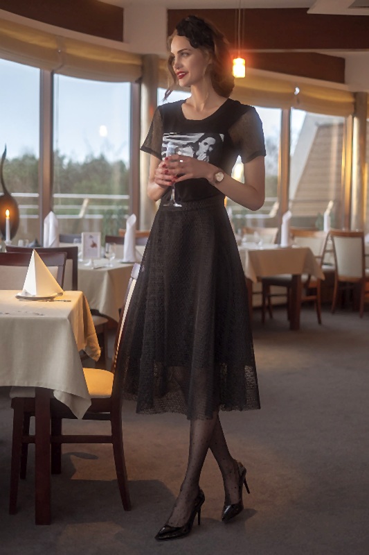 Rozkloszowana spódnica Belinda to odważna propozycja dla prawdziwych fashionistek. Swoim fasonem i długością midi nawiązuje do stylu lat 60., jednak dzięki wykorzystaniu niestandardowego materiału – pianki – zyskuje niebanalnego, buntowniczego charakteru. Na uwagę zasługują też szare bombki oraz ołówkowa, czarna klasyka.