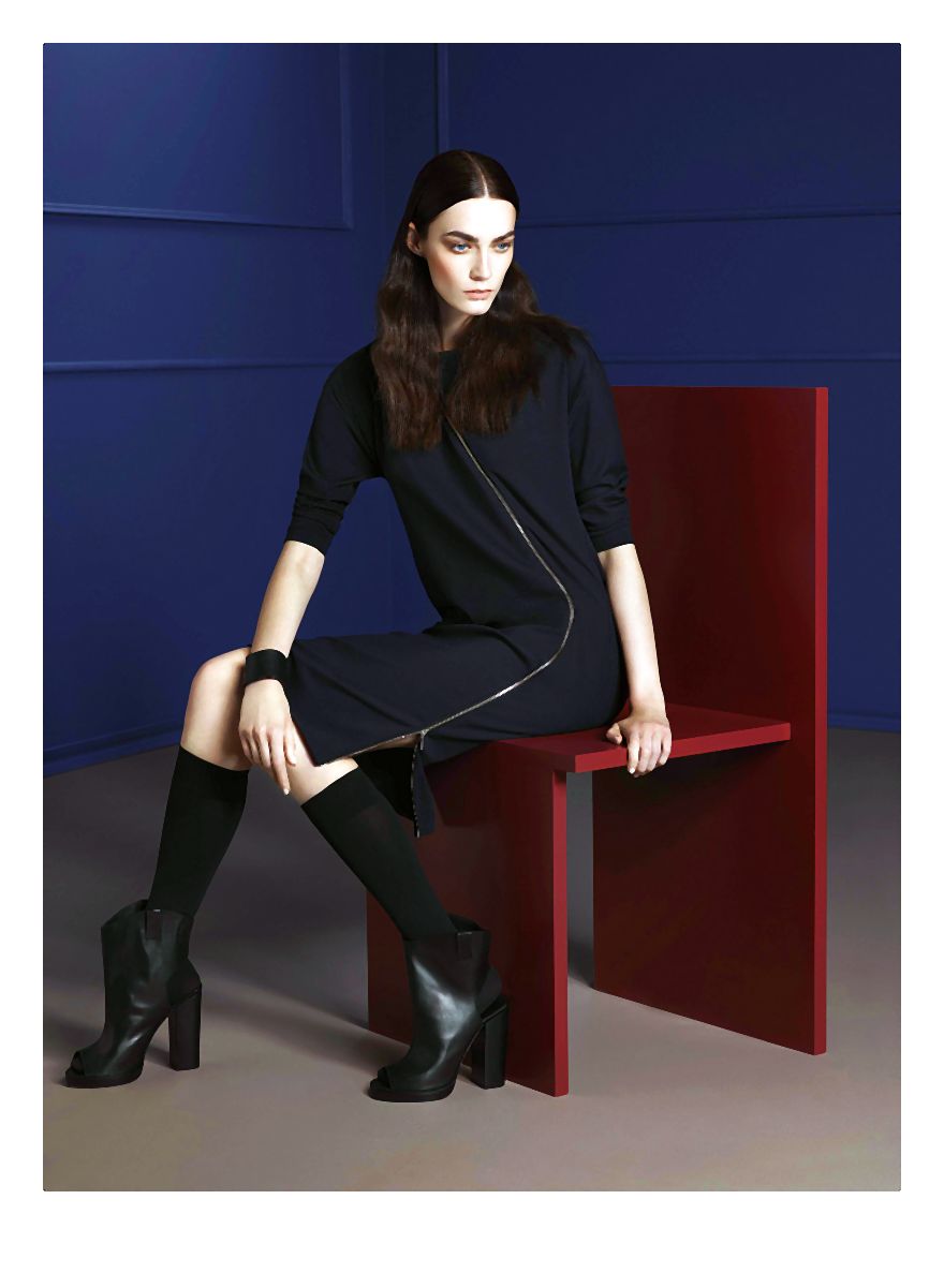 Solar F/W 2014/15 to także zabawa formami. Kolekcja przedstawia przerysowane górne części garderoby połączone z wąskimi dołami.